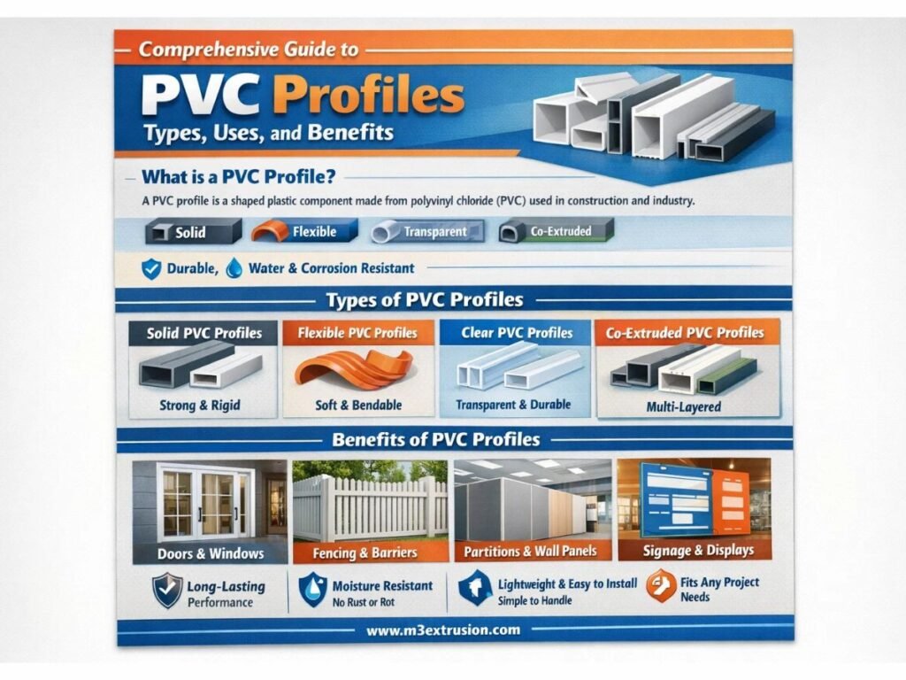 By choosing PVC profiles, industries can ensure safer, more efficient and durable structures while reducing maintenance and operational costs over time. Are you looking for high-quality PVC profiles for your industrial or construction projects? M3 Extrusion offers a wide range of durable, versatile and customizable PVC profiles to meet all your structural, decorative, and protective needs.