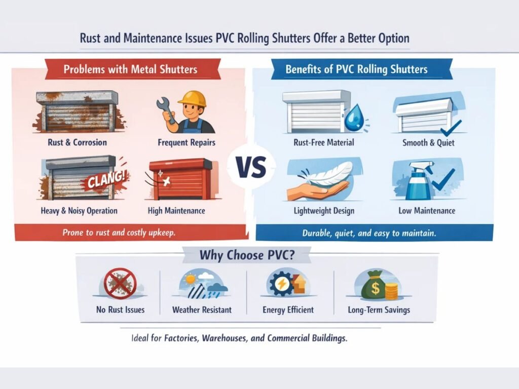 Across factories, warehouses, and commercial facilities, many buyers now choose a PVC rolling shutter in India to reduce long-term issues linked to corrosion, heavy weight, and ongoing repairs.